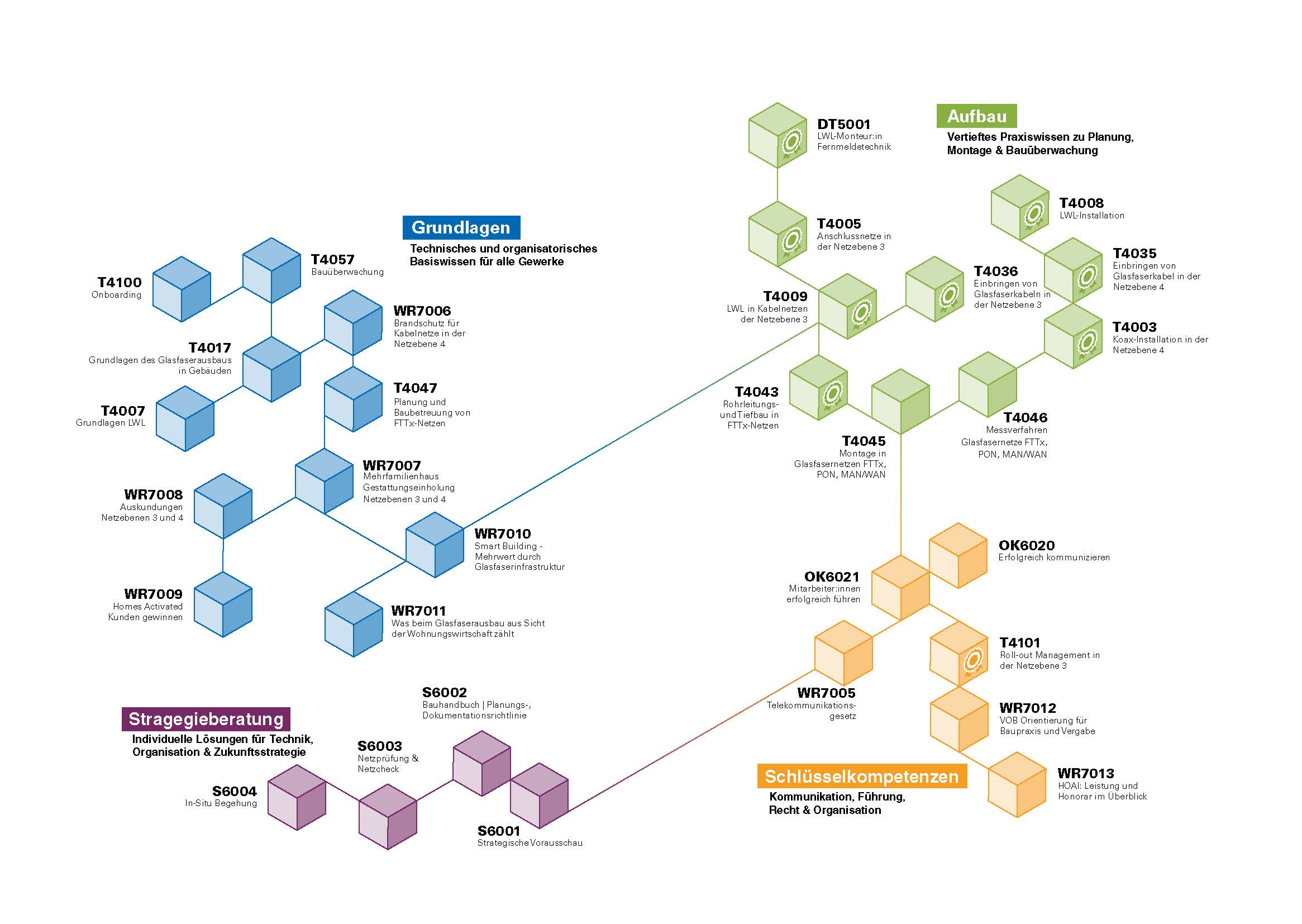 Entdecken Sie unsere Kurslandschaft auf einen Blick: Von den ersten Schritten über gezielte Vertiefung bis hin zur Spezialisierung – jedes Modul führt Sie auf Ihrem persönlichen Weiterbildungsweg. Mit unserer Übersicht sehen Sie sofort, welche Kurse aufeinander aufbauen und wie Sie Ihre Qualifikation strategisch entwickeln können.